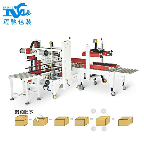 手動折蓋“一”字型封箱機與四角邊“工”字型封箱機連機配套(tào)