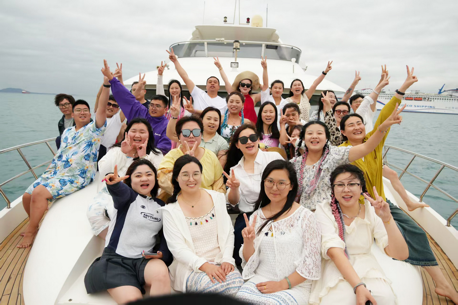 女同(tóng)事們在免稅(shuì)城化身"人間計算器"時,直男(nán)們(men)終於理解什麽叫"戰鬥力爆表"。而下午的遊艇狂歡徹底釋放了(le)所有人。遊艇剛離港,K歌之王們就霸占麥(mài)克(kè)風——老板一首《我的好兄弟》唱得豪邁又走心,引得隔壁遊艇的大哥探頭問:“你們公司還招人(rén)嗎,哈哈(hā)哈...”客服小(xiǎo)妹的《告白氣球》更是甜到海鷗都來伴舞。摩托艇區更(gèng)刺激:銷(xiāo)售冠軍飆艇像衝刺KPI,技術宅海釣收獲滿滿,大家吃吃喝(hē)喝,品味海南特產,熱帶水果,打牌喝酒開心極了(le)。