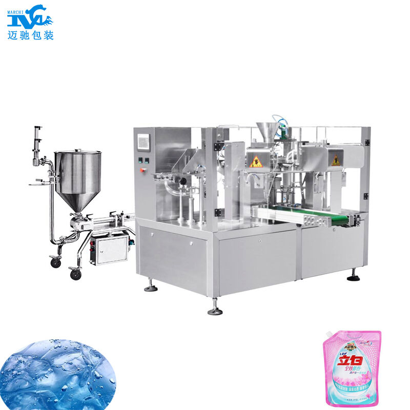 洗衣液給袋式包裝機可包裝洗衣液、洗手液、沐浴(yù)乳、清(qīng)潔劑、柔順劑等液體(tǐ)包裝。
