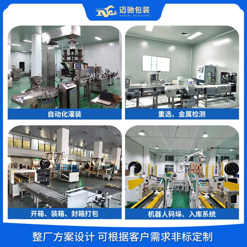 2.該套設備自動化程度(dù)高,整線聯動運(yùn)行,符合GMP標準要求。由(yóu)操作人員將瓶放置理瓶機上,機器自(zì)動理瓶,物料自動提升(shēng)、稱重、入瓶、定位罐瓶(píng)、封蓋、貼標簽(qiān),生產日期(qī)打印等一係列生產環節均(jun1)是自動化,無需人工參與。根據企業(yè)需求還可配套重量選別秤、幹燥劑自動投包、瓶身(shēn)除粉裝置、人工操作工作(zuò)區、噴碼機、軟(ruǎn)蓋自動封蓋、成(chéng)品收集(jí)工作台等輔助配套設備,進一步完善滿足生產需要