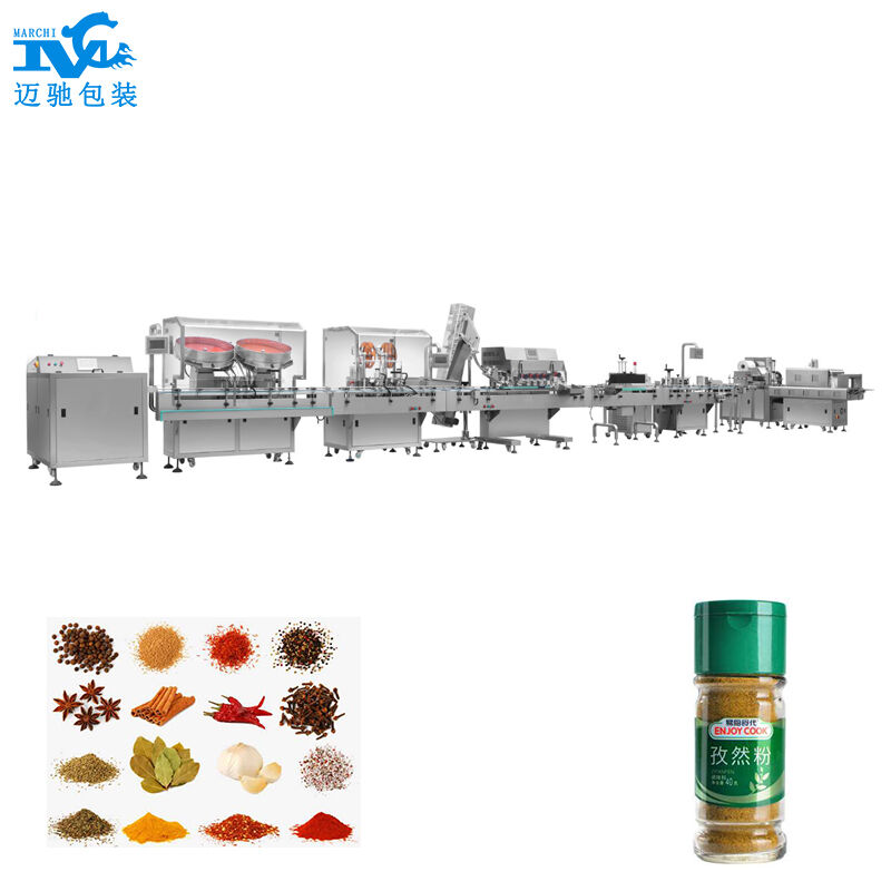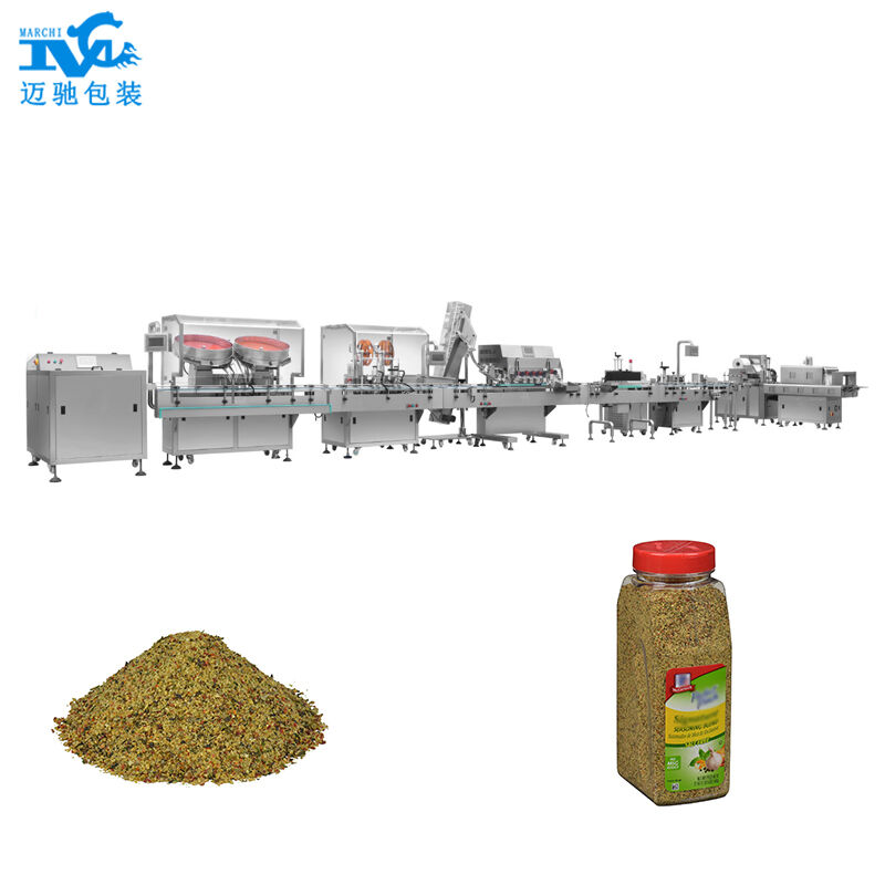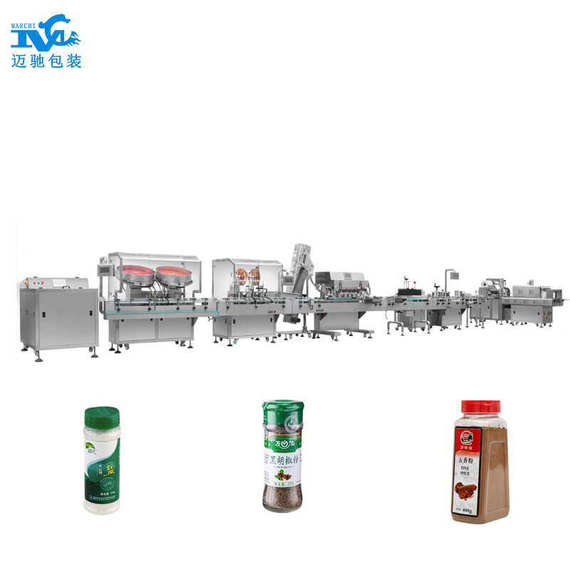 調味品灌裝流水線可包裝(zhuāng)顆(kē)粒料(liào)、粉料(如調味品、食(shí)鹽、嬰兒食品、膨化顆粒、麵粉、麥片等)。