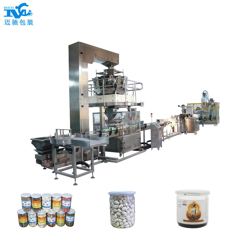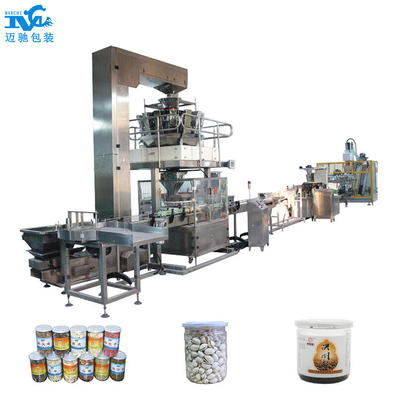 人工把空瓶放在轉盤理瓶機理瓶,人工把要包裝的(de)物料倒入(rù)到z型提升機的振料(liào)鬥內,提升機把物料提升輸送到多頭組合(hé)稱上稱重,輸送帶先(xiān)把空瓶輸送到定位點定位等待,多頭稱灌裝(zhuāng)入瓶,灌裝完後,輸送到瓶身粉塵清除裝置進行清潔,然後再輸送至自動壓蓋機進行封蓋,出來(lái)後自動壓軟塑料蓋,輸送到貼(tiē)標機上貼標,最後人工裝箱(xiāng)。